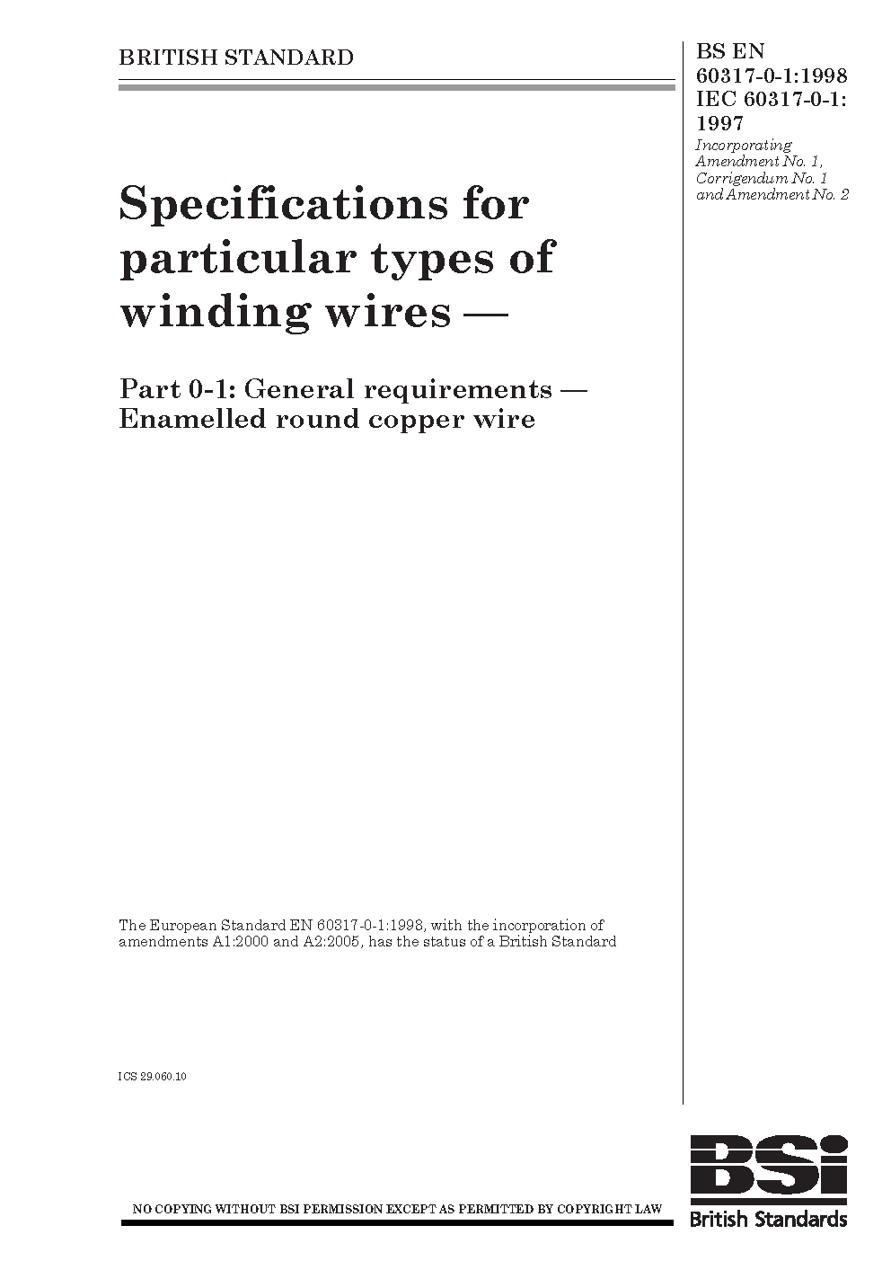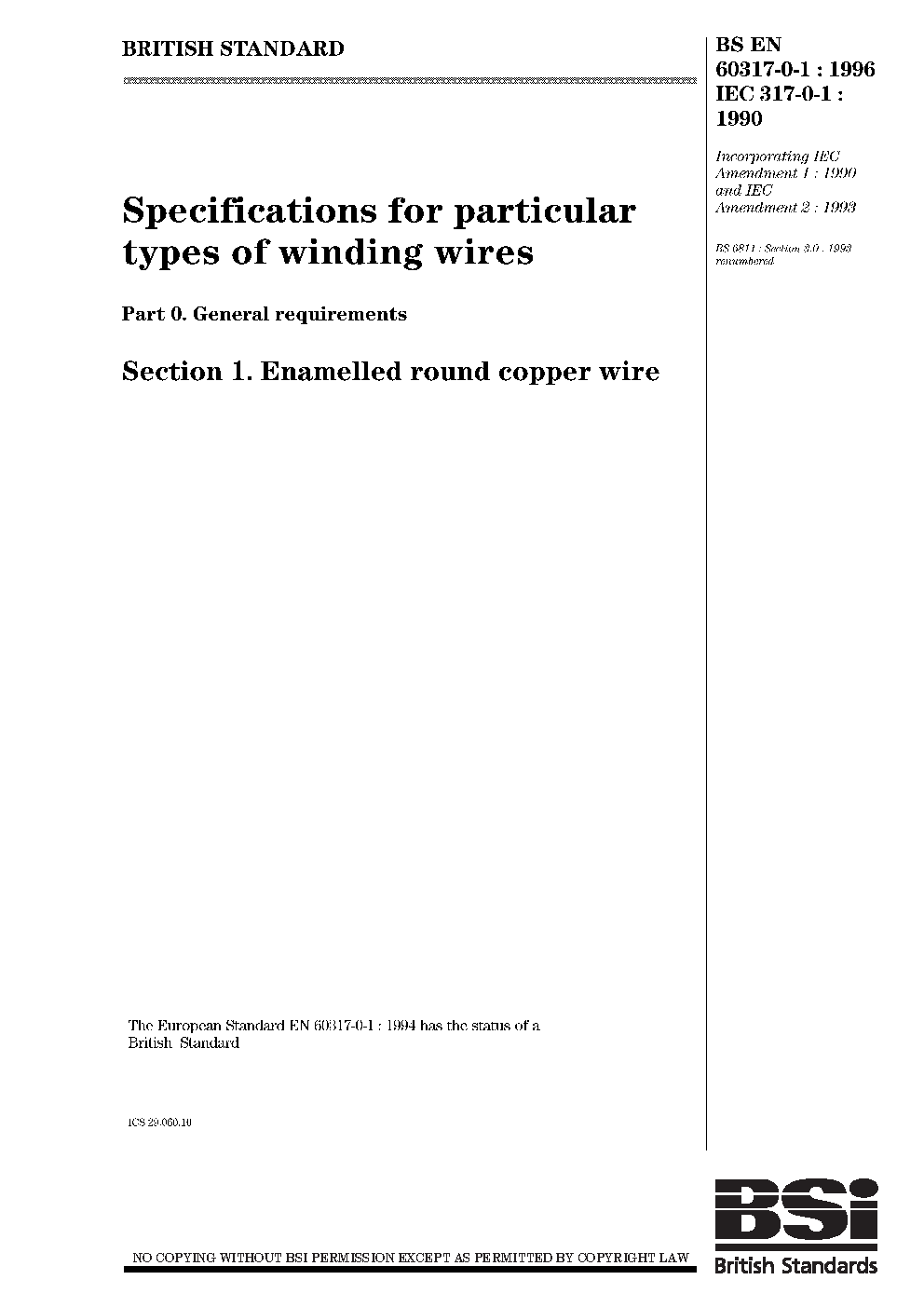 Specifications for particular types of winding wires General requirements. Enamelled round copper wire