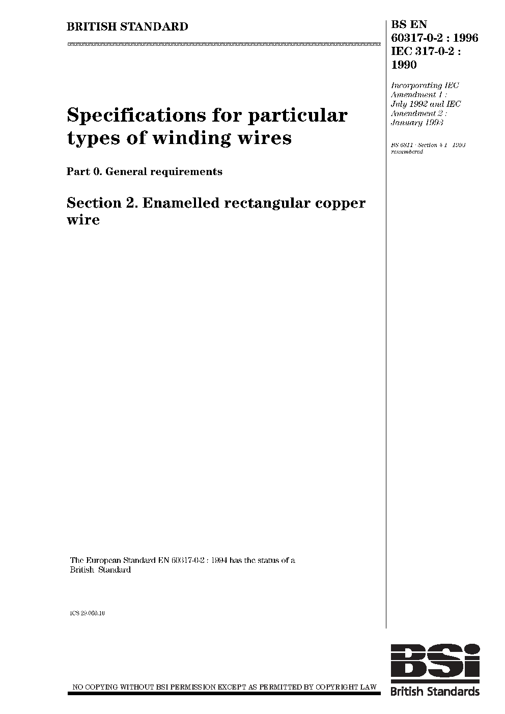 Specifications for particular types of winding wires General requirements. Enamelled rectangular copper wire