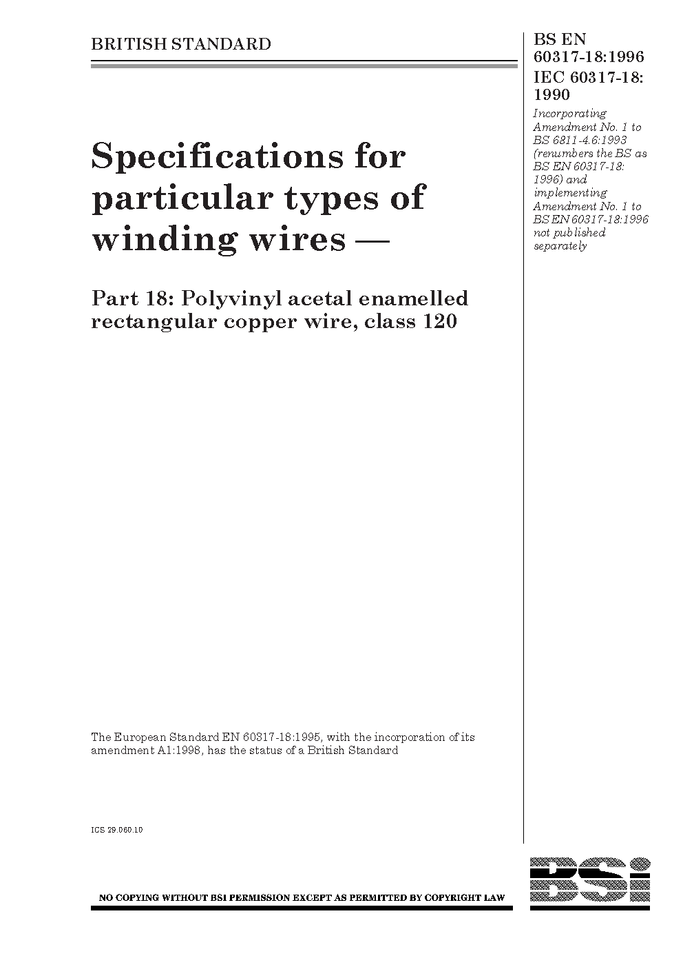 Specifications for particular types of winding wires Polyvinyl acetal enamelled rectangular copper wire, class 120
