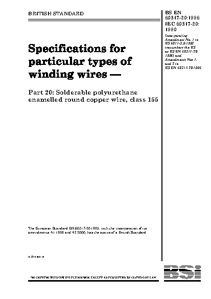 Specifications for particular types of winding wires Solderable polyurethane enamelled round copper wire, class 155