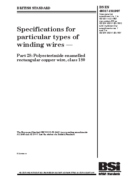 Specifications for particular types of winding wires Polyesterimide enamelled rectangular copper wire, class 180