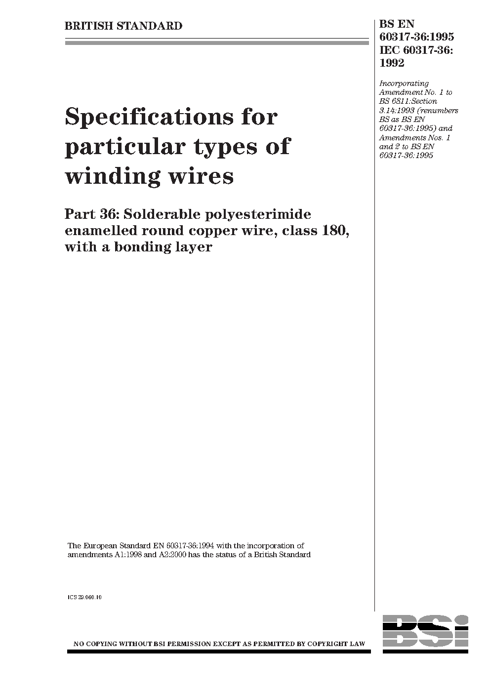 Specifications for particular types of winding wires Solderable polyesterimide enamelled round copper wire, class 180, with a bonding layer