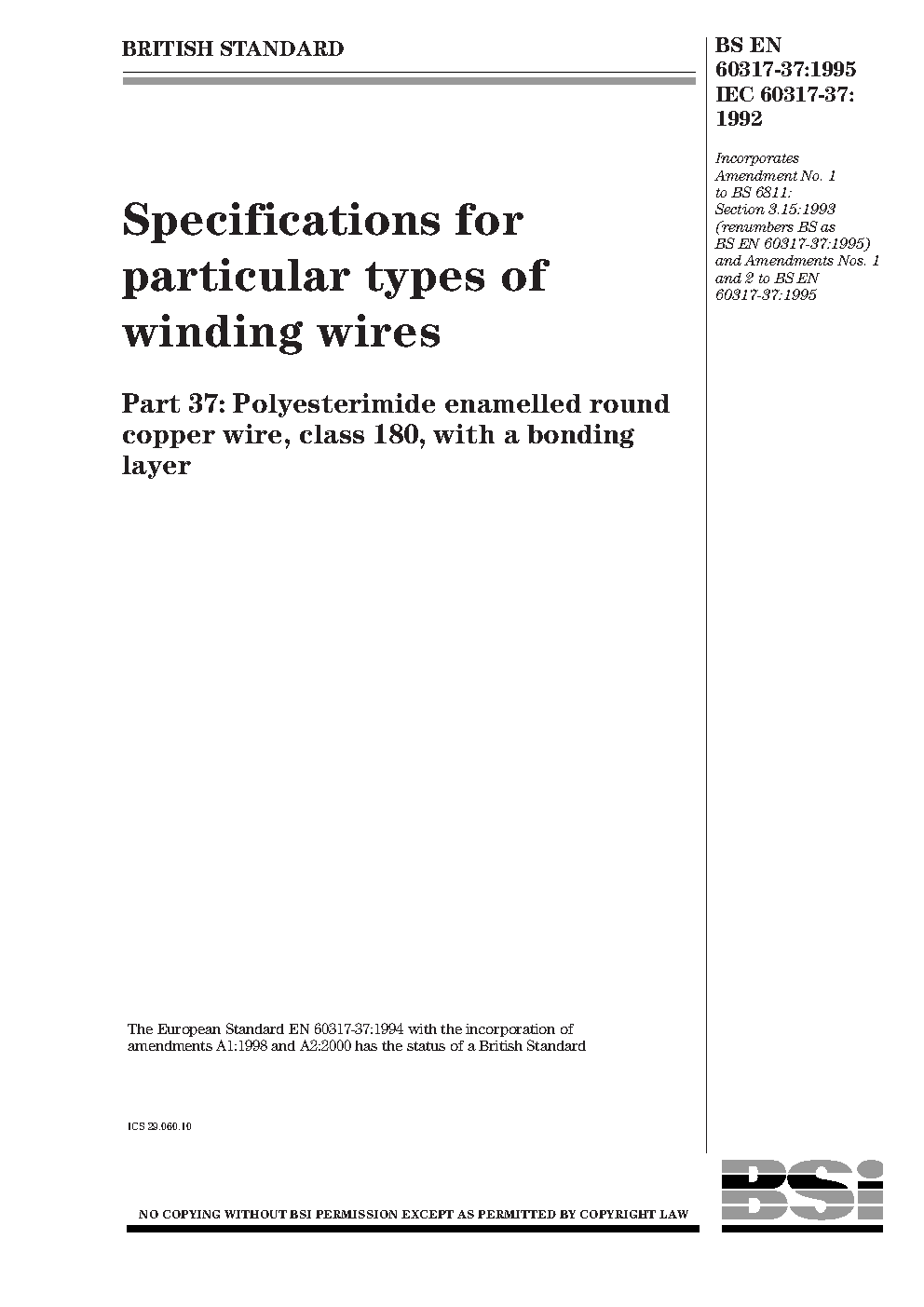 Specifications for particular types of winding wires Polyesterimide enamelled round copper wire, class 180, with a bonding layer