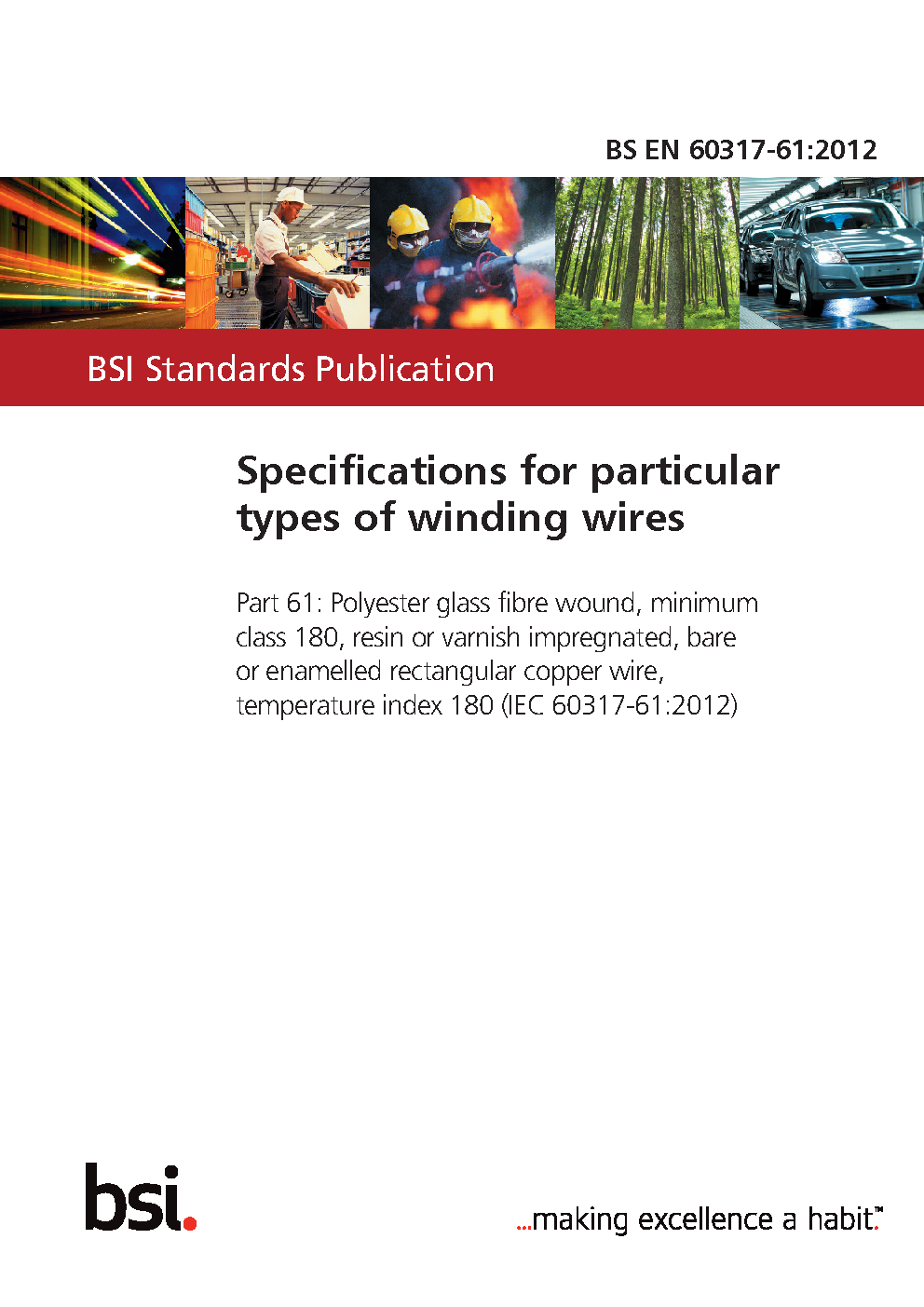 Specifications for particular types of winding wires Polyester glass fibre wound, minimum class 180, resin or varnish impregnated, bare enamelled rectangular copper wire, temperature index 180