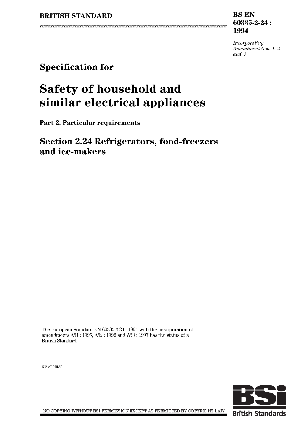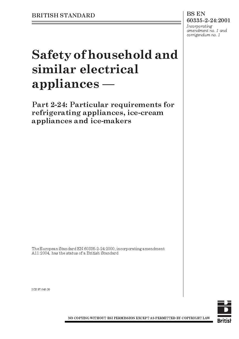 Household and similar electrical appliances. Safety Particular requirements for refrigerating appliances, ice-cream appliances ice makers