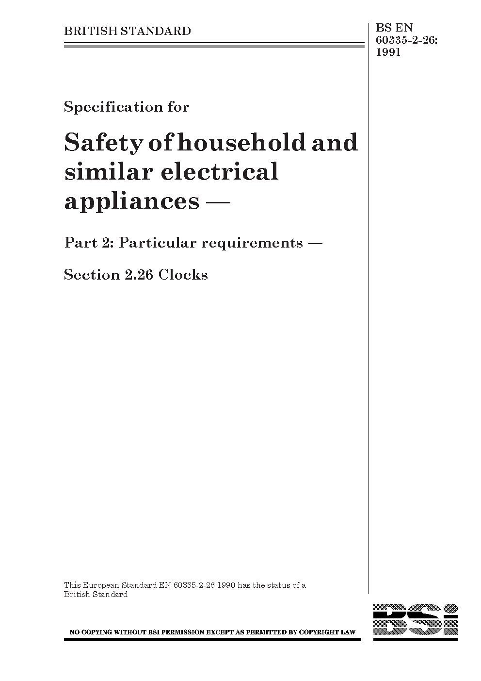 Specification for safety of household and similar electrical appliances. Particular requirements Clocks