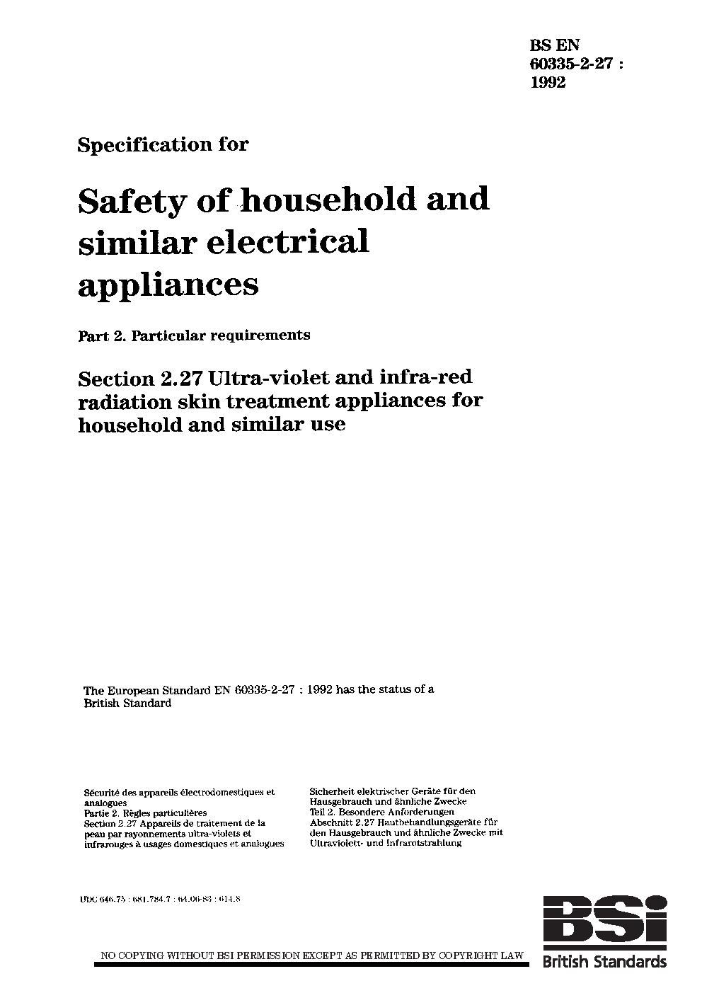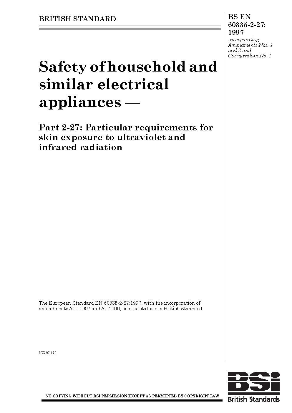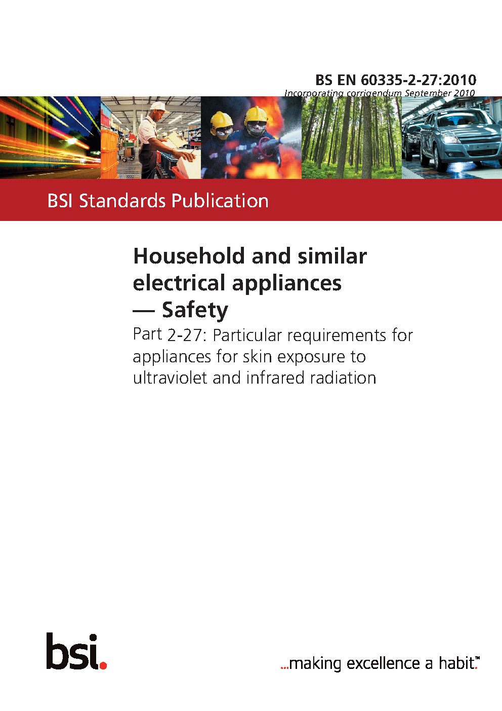 Household and similar electrical appliances. Safety Particular requirements for appliances skin exposure to ultraviolet infrared radiation