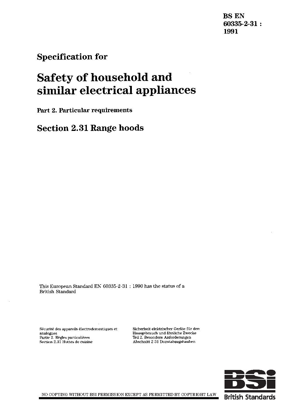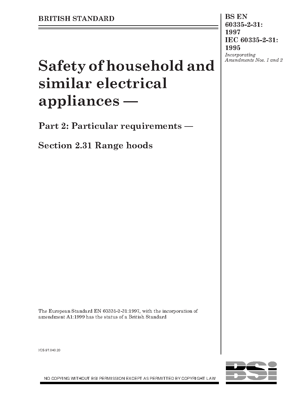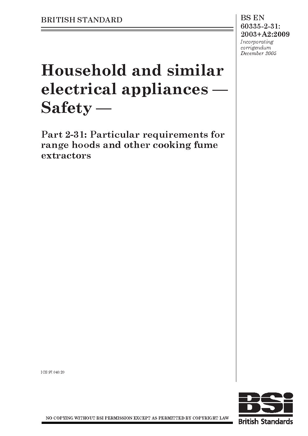 Protected electrical equipment;Household equipment;Electrical household appliances;Cooking appliances;Catering equipment;Electrical safety;Cooker hoods;Cookers
