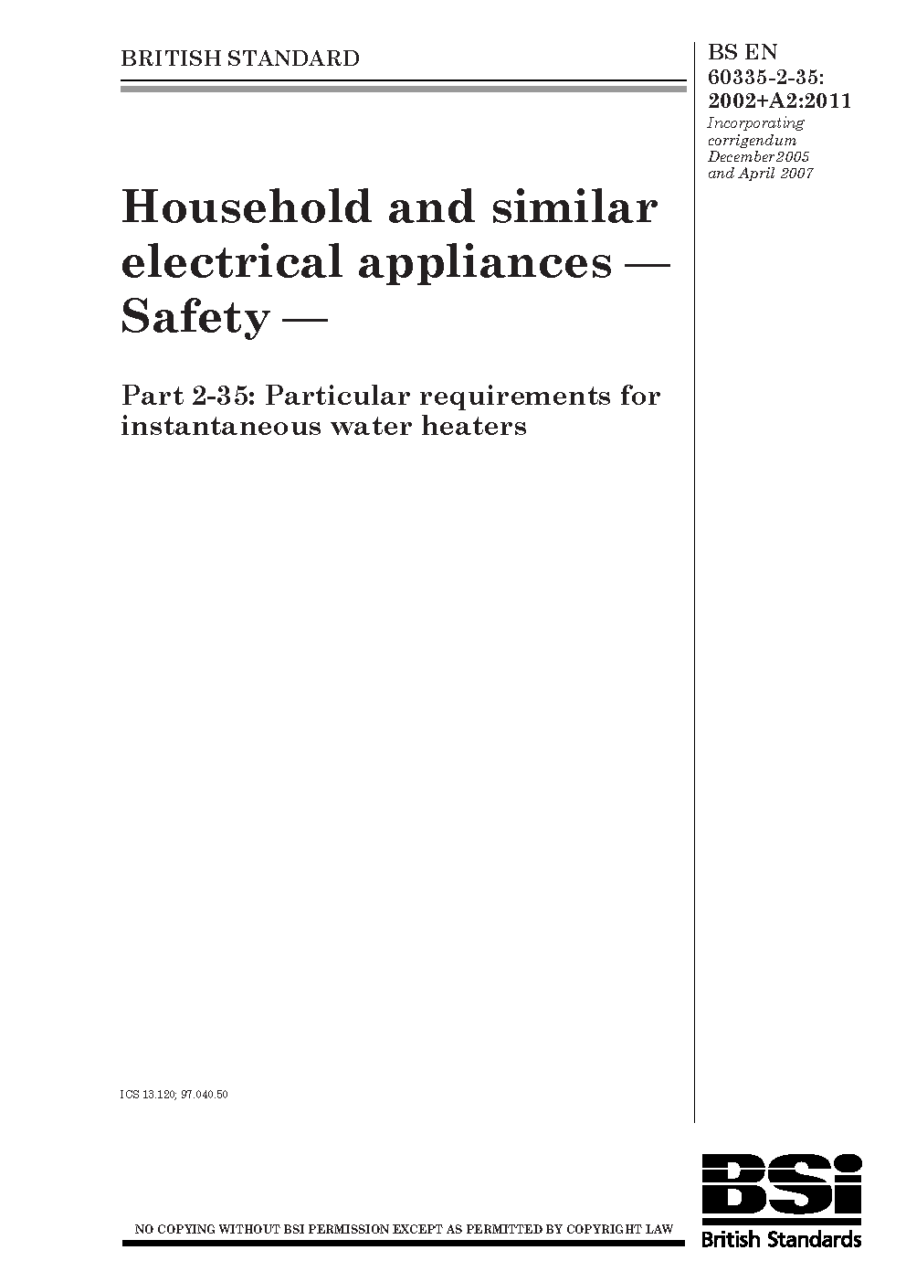 Household and similar electrical appliances. Safety Particular requirements for instantaneous water heaters