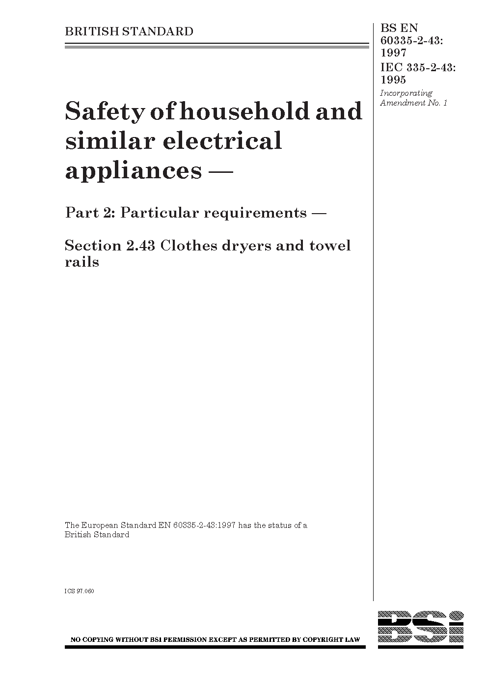 Household and similar electrical appliances. Safety Particular requirements for clothes dryers towel rails