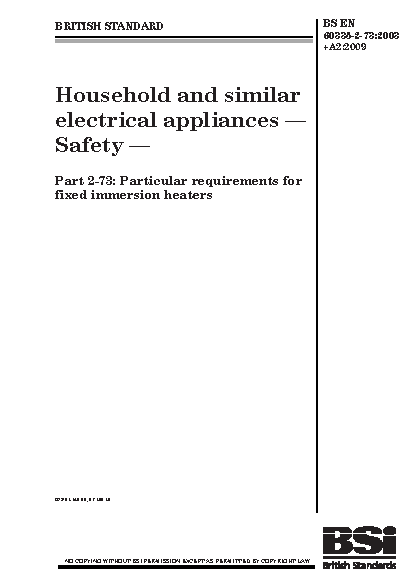 Household and similar electrical appliances. Safety Particular requirements for fixed immersion heaters