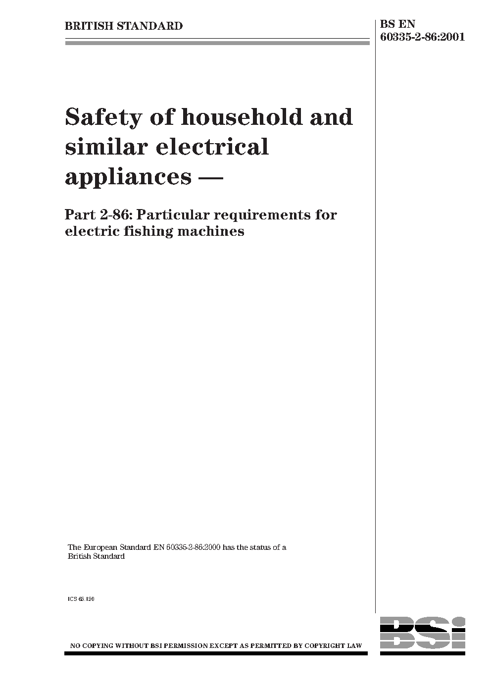 Specification for safety of household and similar electrical appliances Particular requirements electric fishing machines