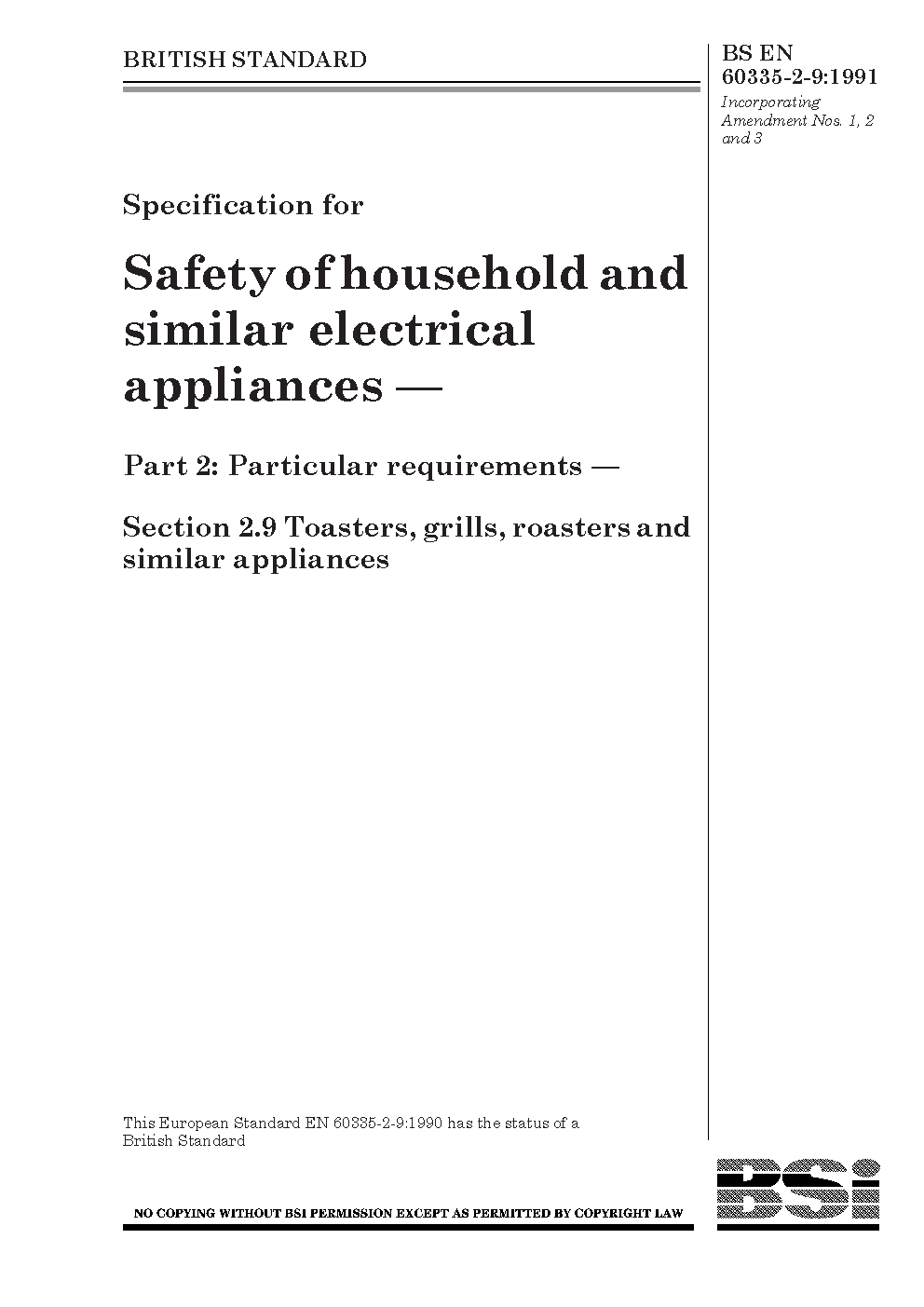 Household and similar electrical appliances. Safety Particular requirements for grills, toasters portable cooking appliances