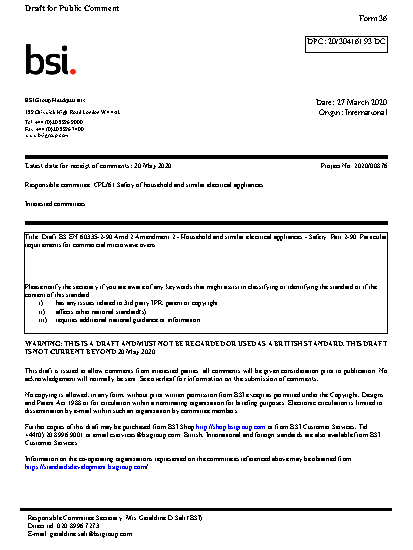 Specification for safety of household and similar electrical appliances Particular requirements commercial microwave ovens