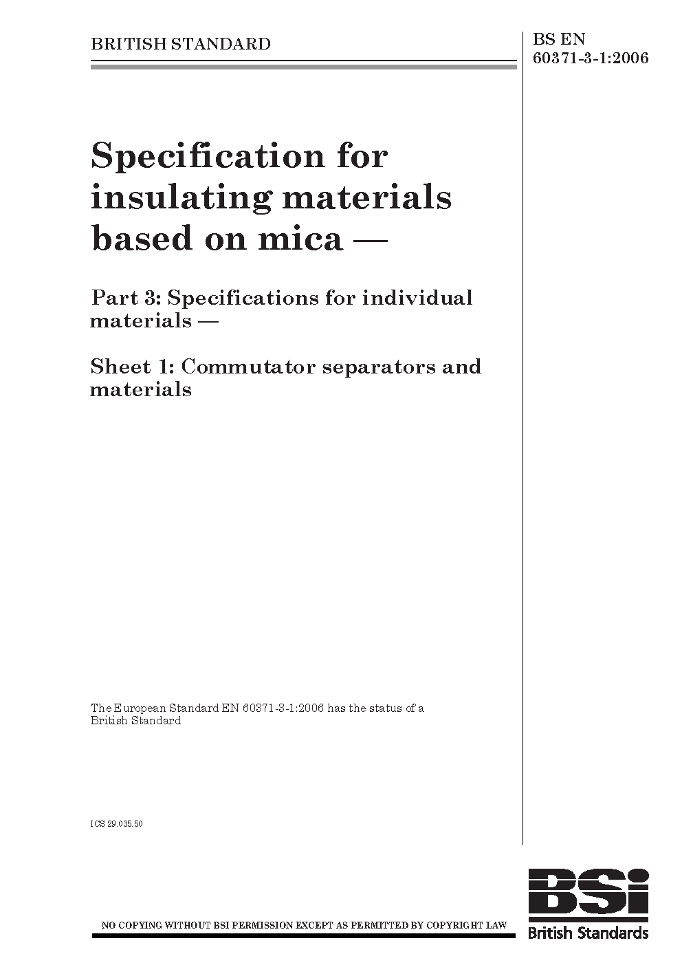 BS EN 60371-3-1:2006