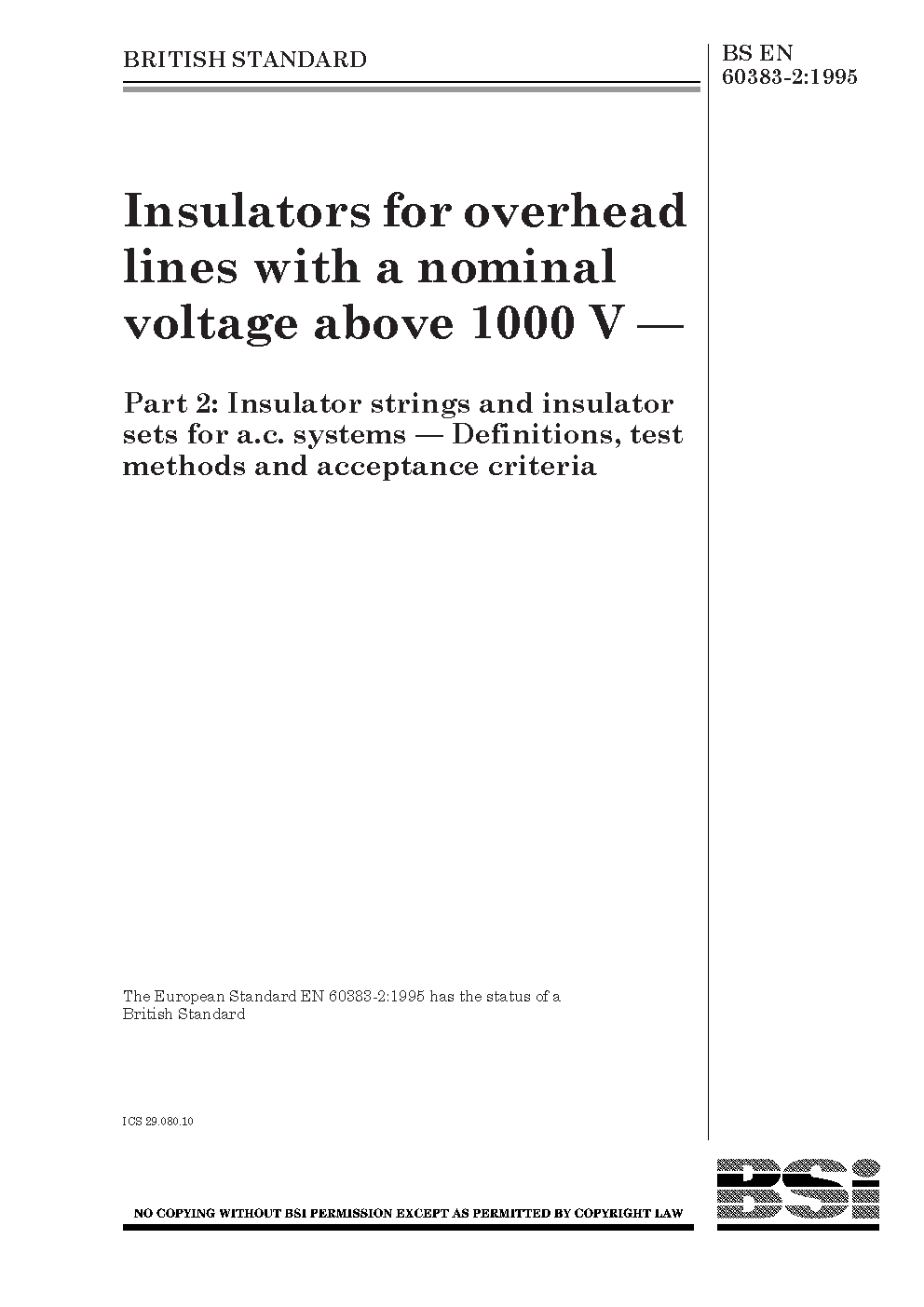 Insulators for overhead lines with a nominal voltage above 1000 V Insulator strings and insulator sets a.c. systems. Definitions, test methods acceptance criteria