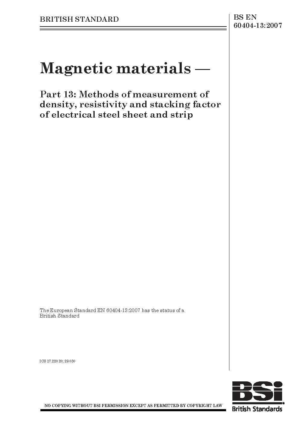 BS EN 60404-13:2007