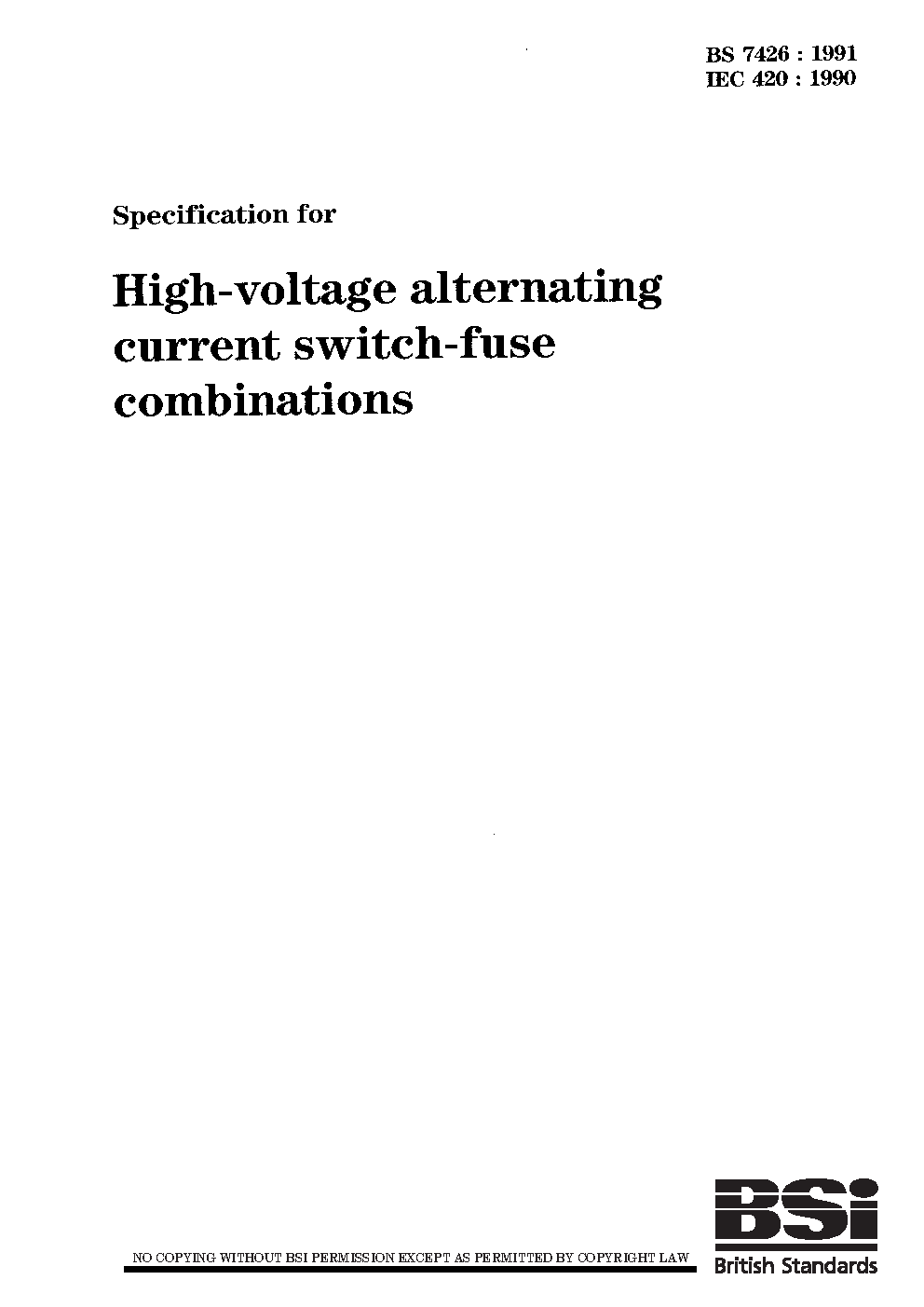 Specification for high-voltage alternating current switch-fuse combinations