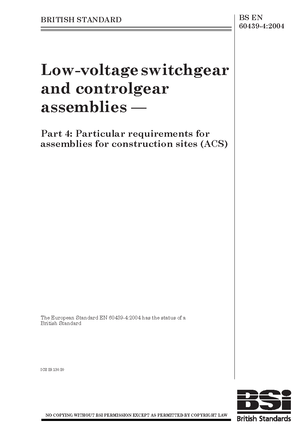BS EN 60439-4:2004