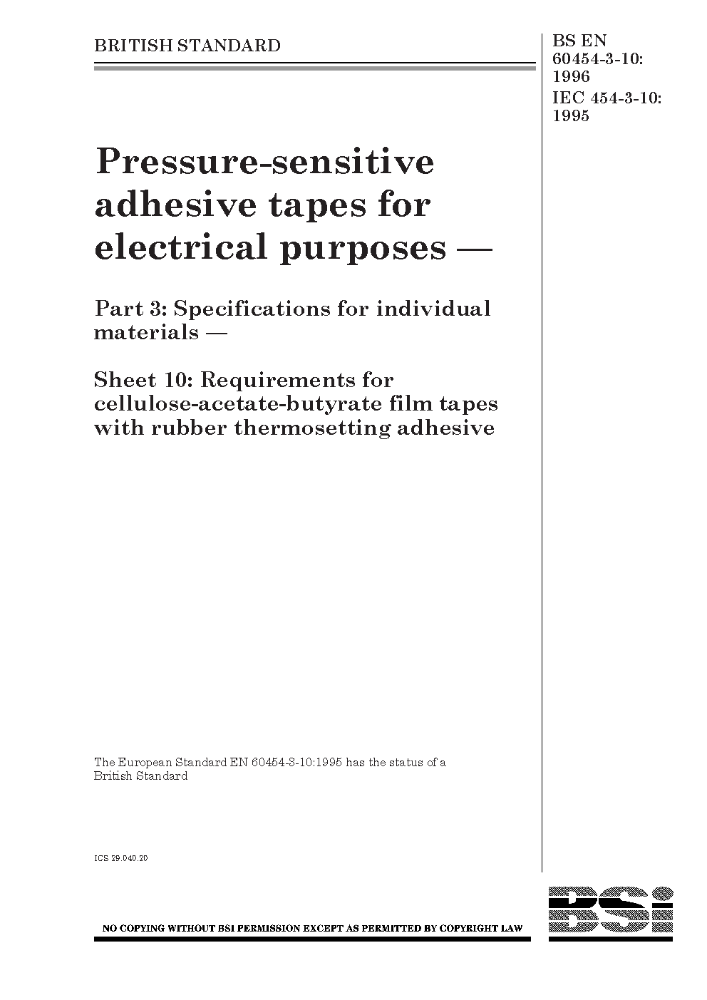 Specifications for pressure-sensitive adhesive tapes electrical purposes. individual materials Requirements cellulose-acetate-butyrate film with rubber thermosetting