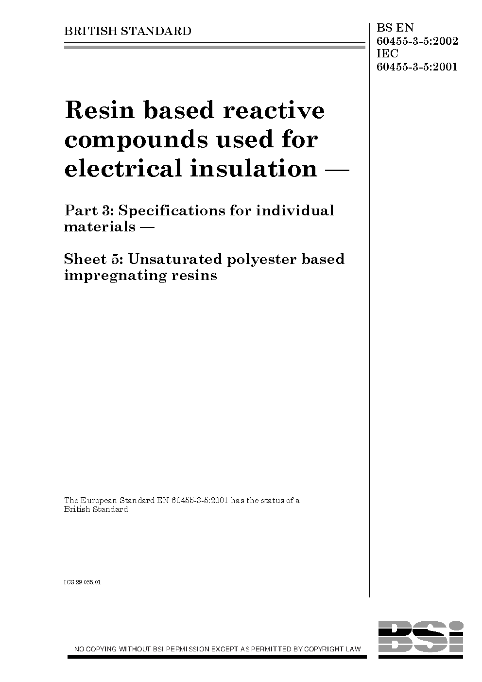 BS EN 60455-3-5:2002