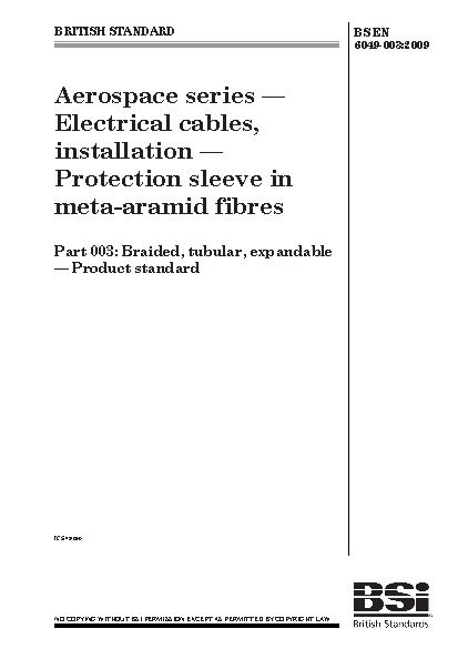 Aerospace series. Electrical cables, installation. Protection sleeve in meta-aramid fibres Braided, tubular, expandable. Product standard