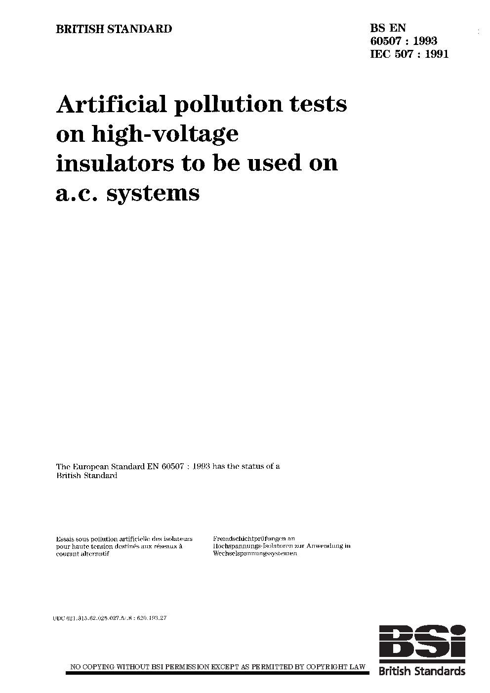 Artificial pollution tests on high-voltage insulators to be used on a.c. systems