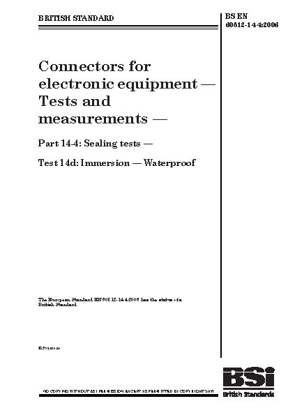 Connectors for electronic equipment. Tests and measurements Sealing tests Test 14d. Immersion. Waterproof