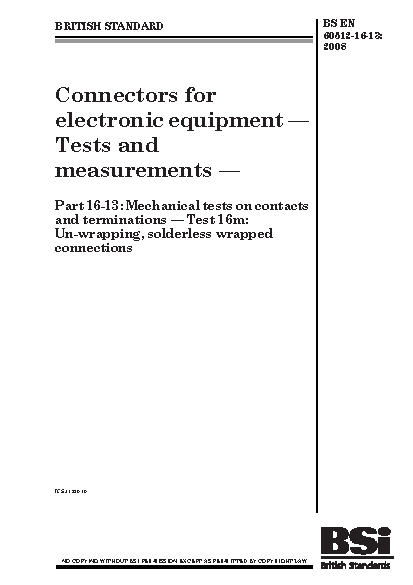 Connectors for electronic equipment. Tests and measurements Mechanical tests on contacts terminations. Test 16m. Un-wrapping, solderless wrapped connections