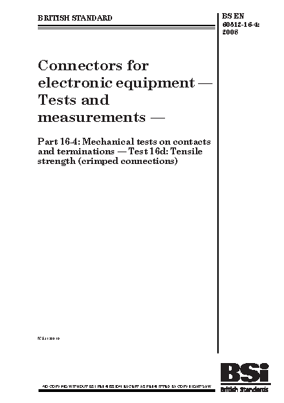 Connectors for electronic equipment. Tests and measurements Mechanical tests on contacts terminations. Test 16d. Tensile strength (crimped connections)