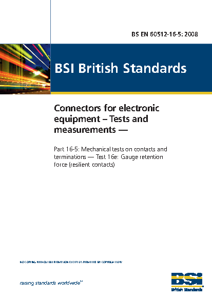 Connectors for electronic equipment. Tests and measurements Mechanical tests on contacts terminations. Test 16e. Gauge retention force (resilient contacts)