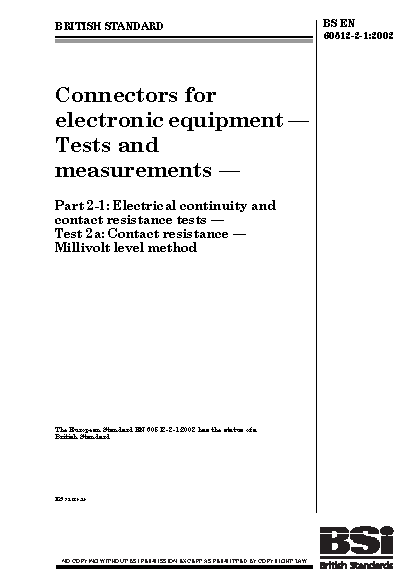 Connectors for electronic equipment. Tests and measurements. Electrical continuity contact resistance tests Test 2a. Contact resistance. Millivolt level method