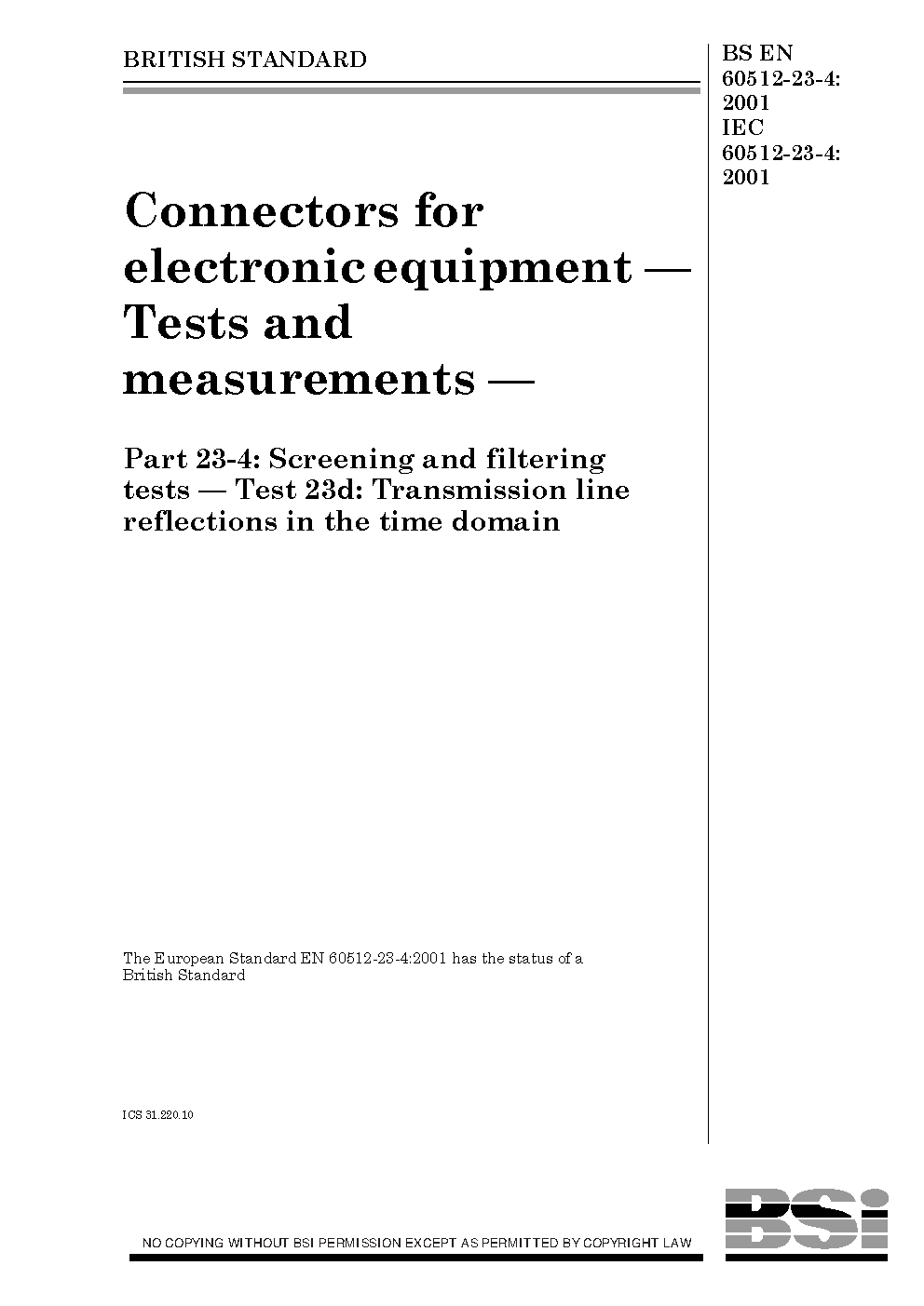 Connectors for electronic equipment. Tests and measurements Screening filtering tests Test 23d. Transmission line reflections in the time domain