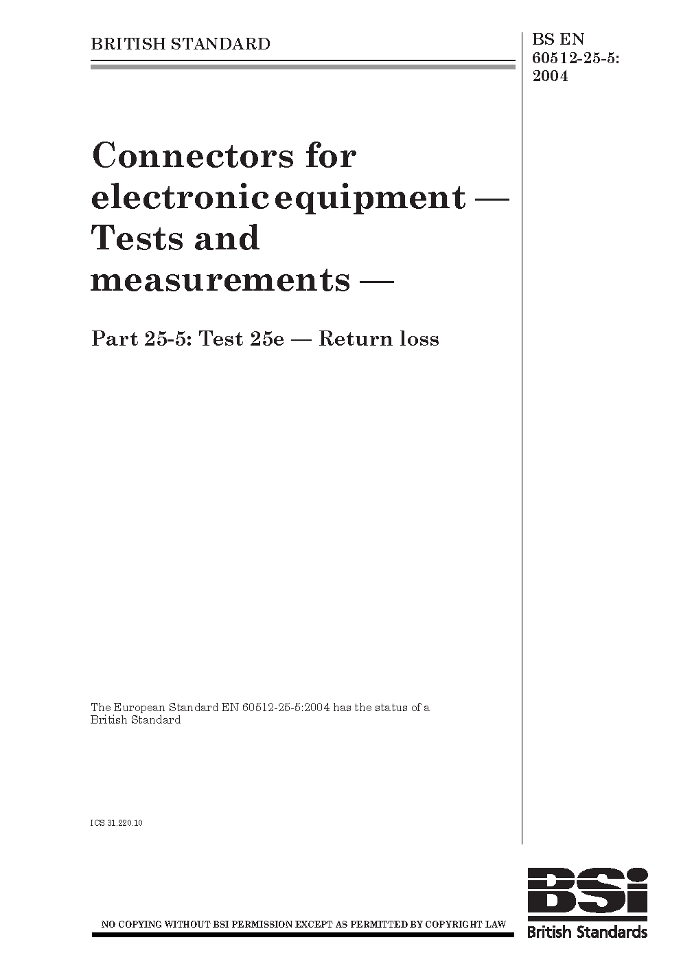 Connectors for electronic equipment. Tests and measurements Test 25e. Return loss