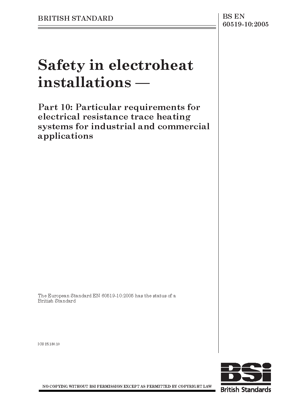 Safety in electroheat installations Particular requirements for electrical resistance trace heating systems industrial and commercial applications