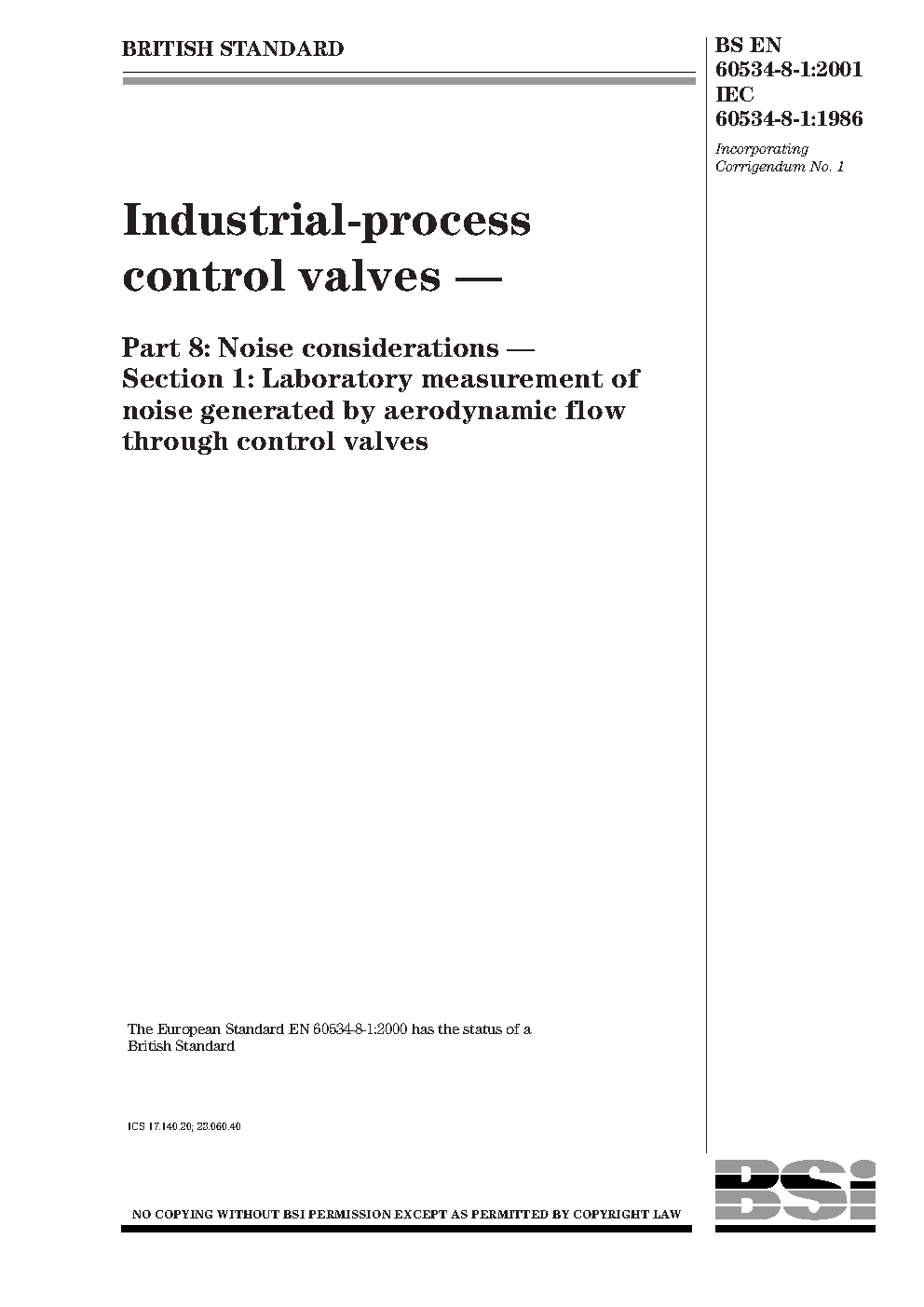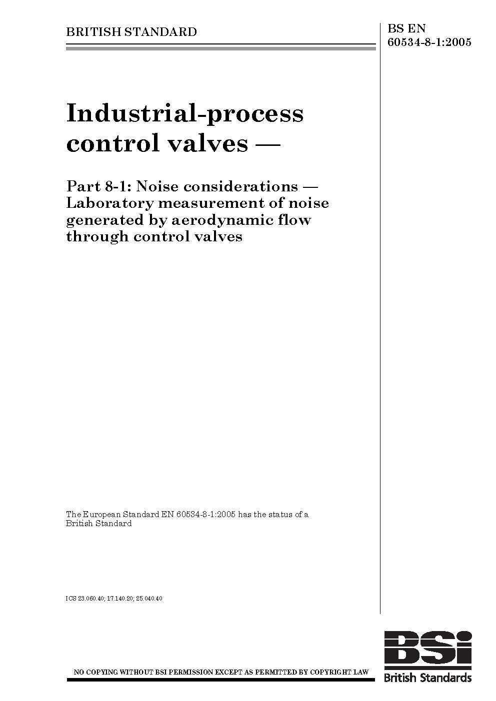 Industrial-process control valves Noise considerations. Laboratory measurement of noise generated by aerodynamic flow through