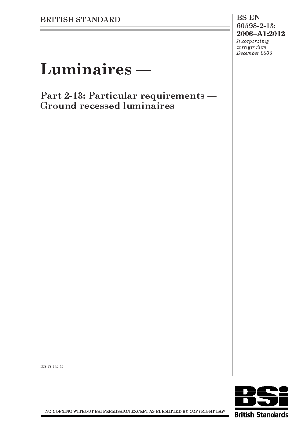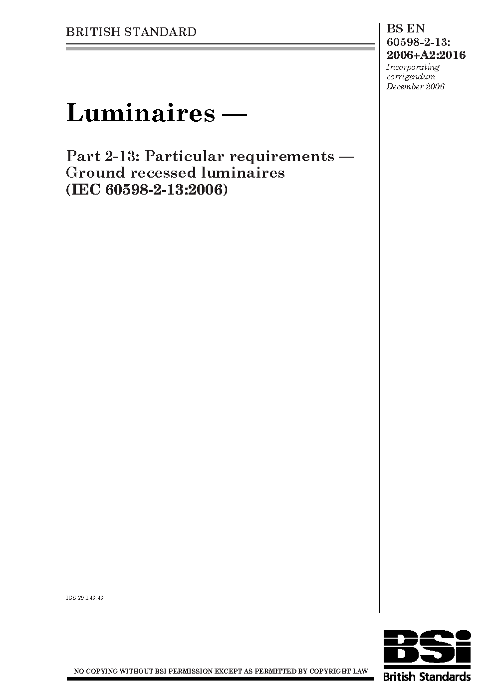 Lighting equipment;Incandescent lamps;Luminaires;Underground;Installation;Discharge lamps;Mechanical testing;Recessed luminaires;Outdoor electric equipment;Environmental testing