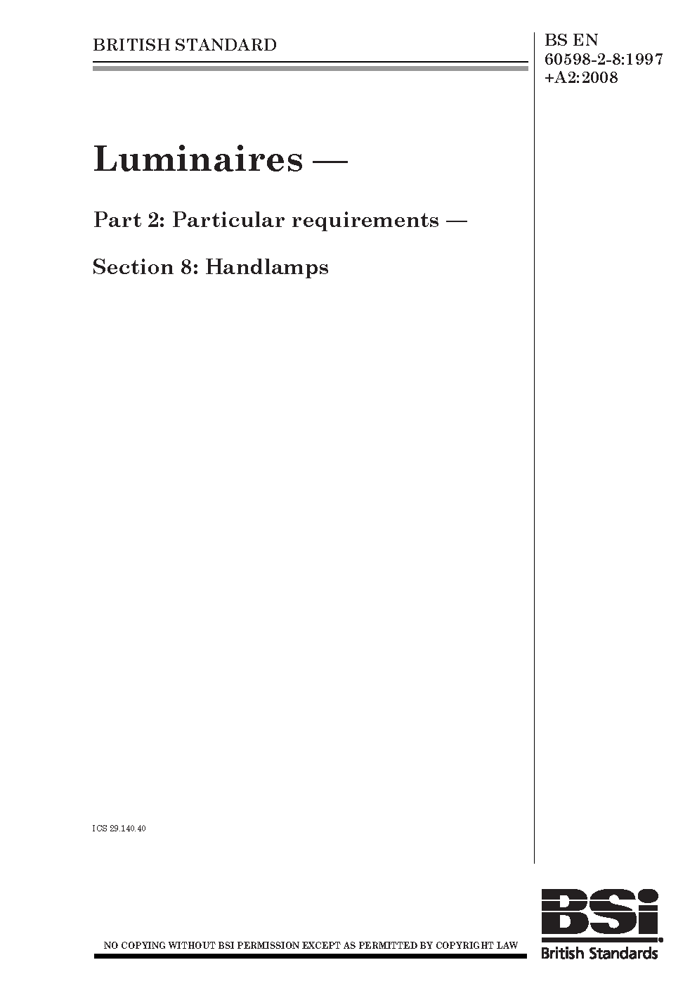 Testing conditions;Lighting equipment;Flexible conductors;Tungsten lamps;Discharge lamps;Electric lamps;Incandescent lamps;Endurance testing;Marking;Bend testing;Fluorescent lamps;Portable;Filament lamps;Hand-portable lamps;Luminaires;Thermal testing;Impact testing;Protected electrical equipment;Mechanical testing