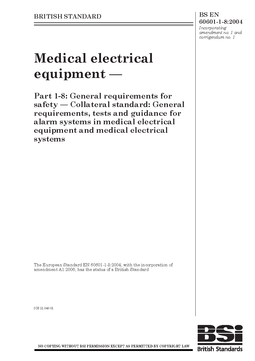 Medical electrical equipment General requirements for basic safety and essential performance. Collateral Standard: requirements, tests guidance alarm systems in medical
