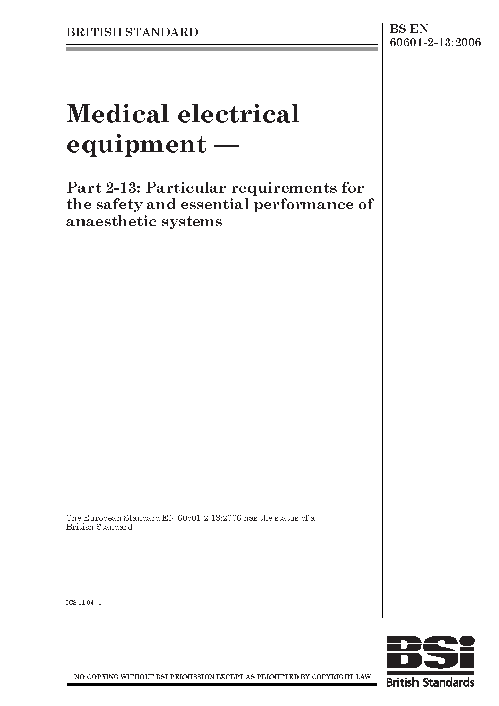 BS EN 60601-2-13:2006
