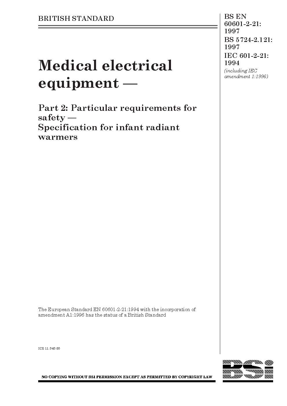 BS EN 60601-2-21:1997