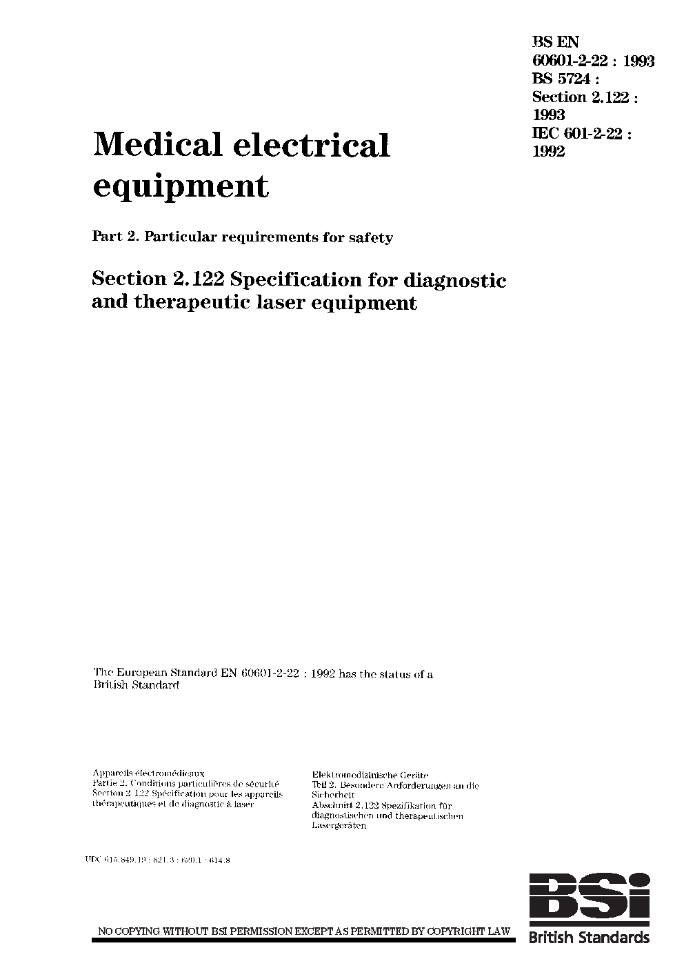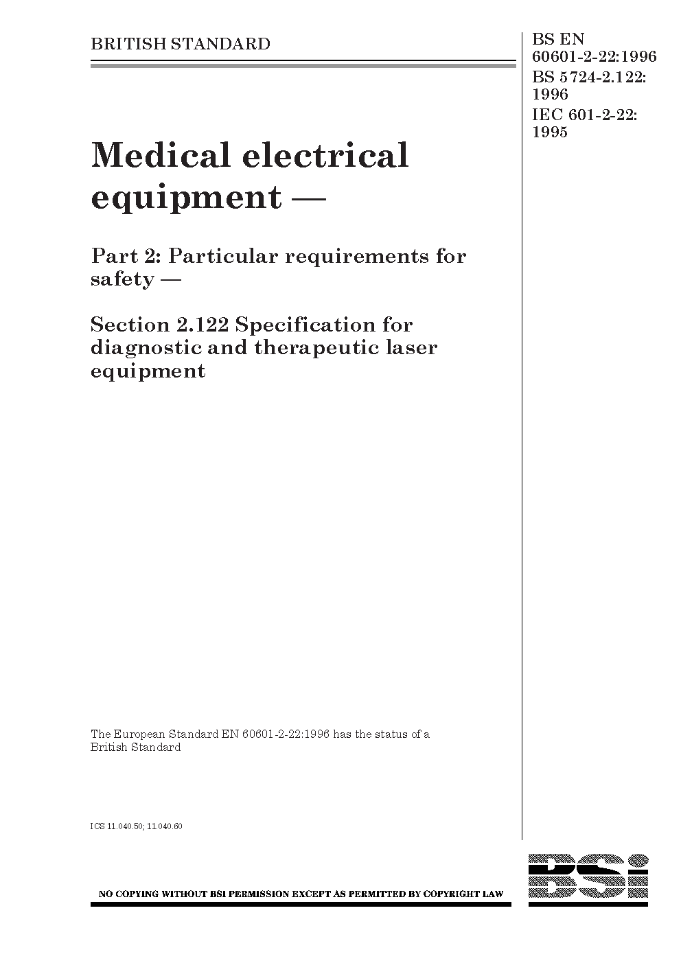 Medical electrical equipment Particular requirements for basic safety and essential performance of surgical, cosmetic, therapeutic diagnostic laser