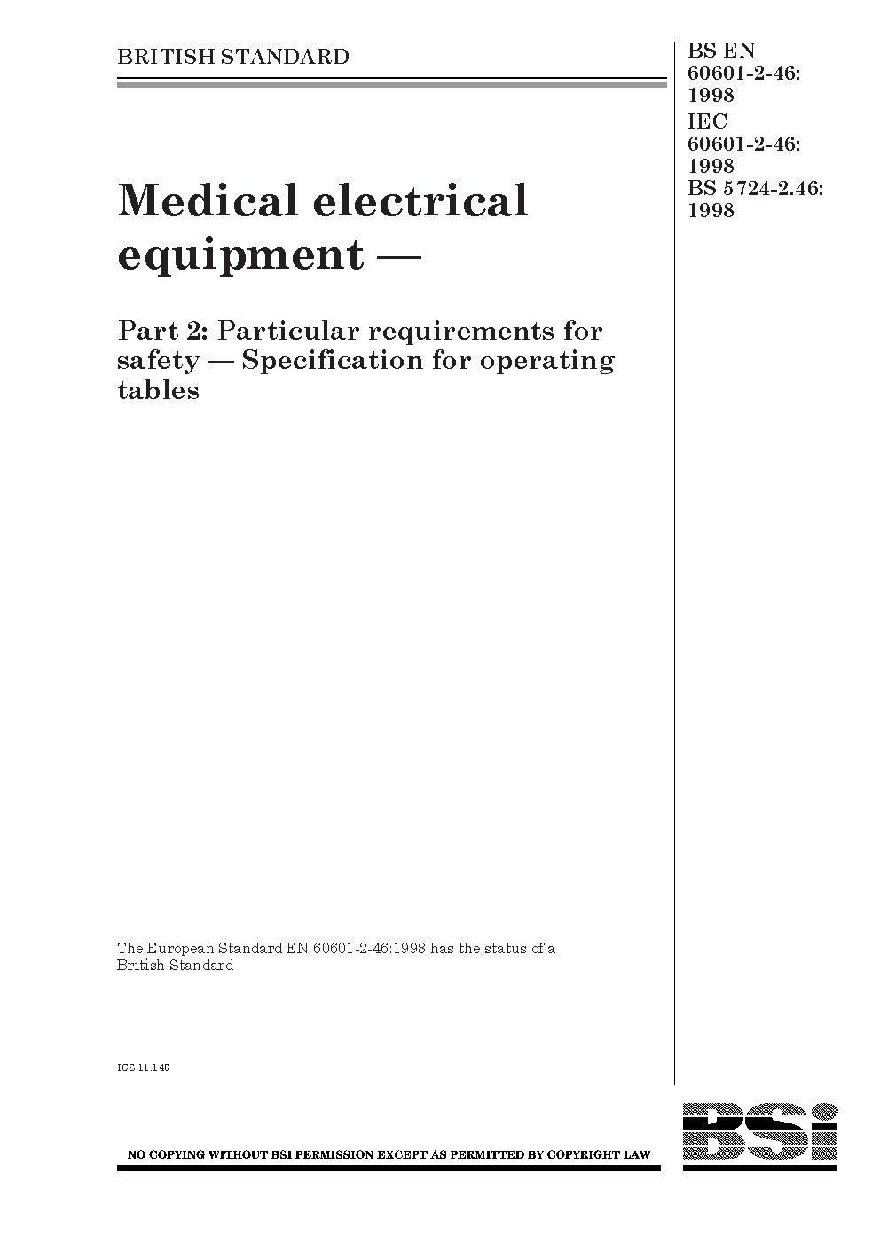 Medical electrical equipment Particular requirements for the basic safety and essential performance of operating tables