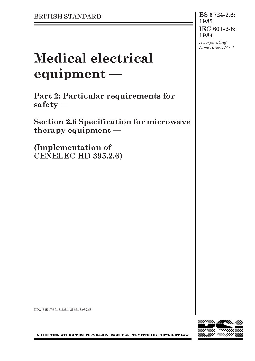 Medical electrical equipment Particular requirements for the basic safety and essential performance of microwave therapy