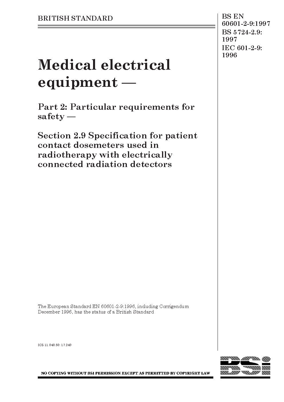 BS EN 60601-2-9:1997
