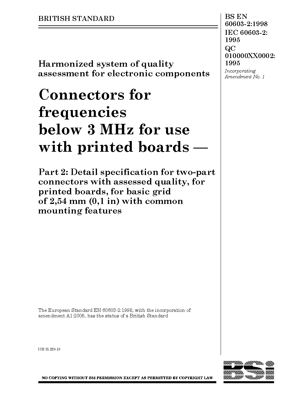 Connectors for frequencies below 3 MHz use with printed boards Detail specification two-part connectors assessed quality, boards, basic grid of 2,54 mm (0,1 in) common mounting features