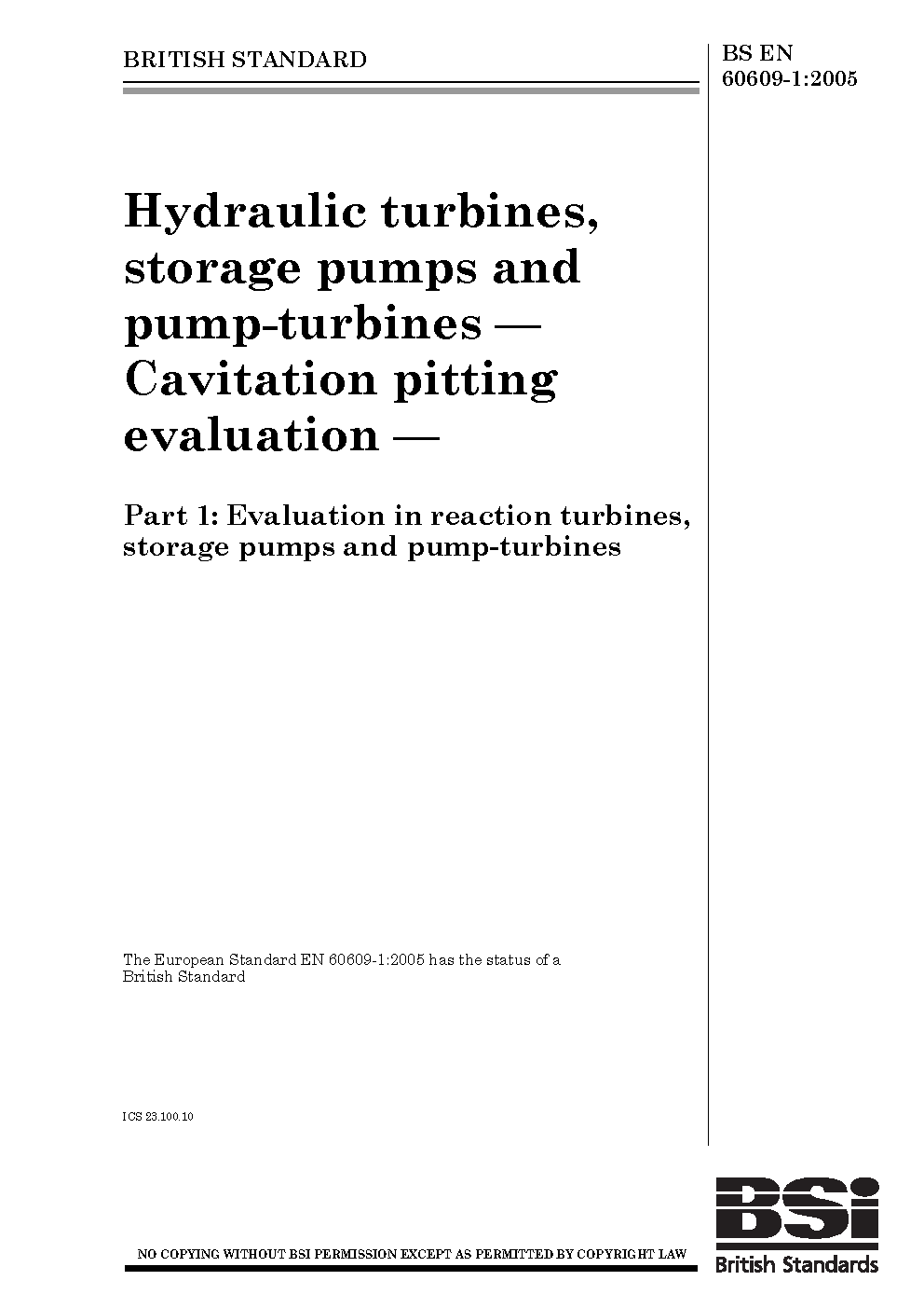 Hydraulic turbines, storage pumps and pump-turbines. Cavitation pitting evaluation Evaluation in reaction pump-turbines