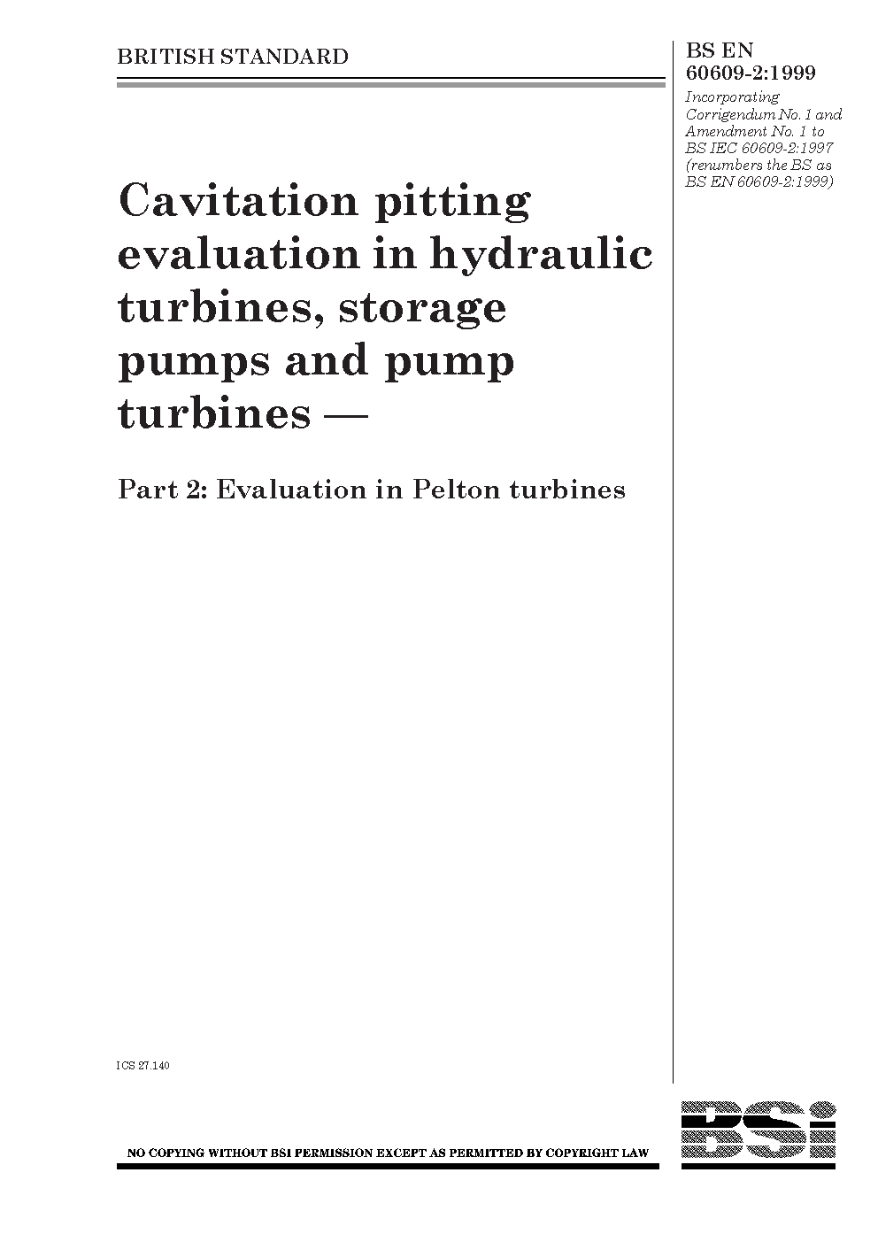 Cavitation pitting evaluation in hydraulic turbines, storage pumps and pump turbines Evaluation Pelton