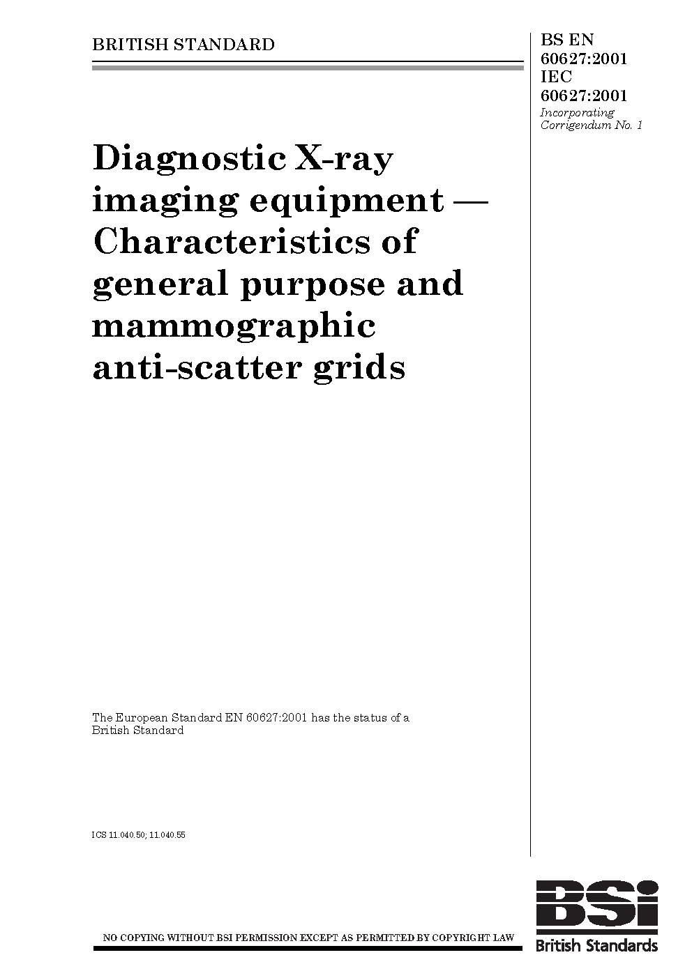 Diagnostic X-ray imaging equipment. Characteristics of general purpose and mammographic anti-scatter grids