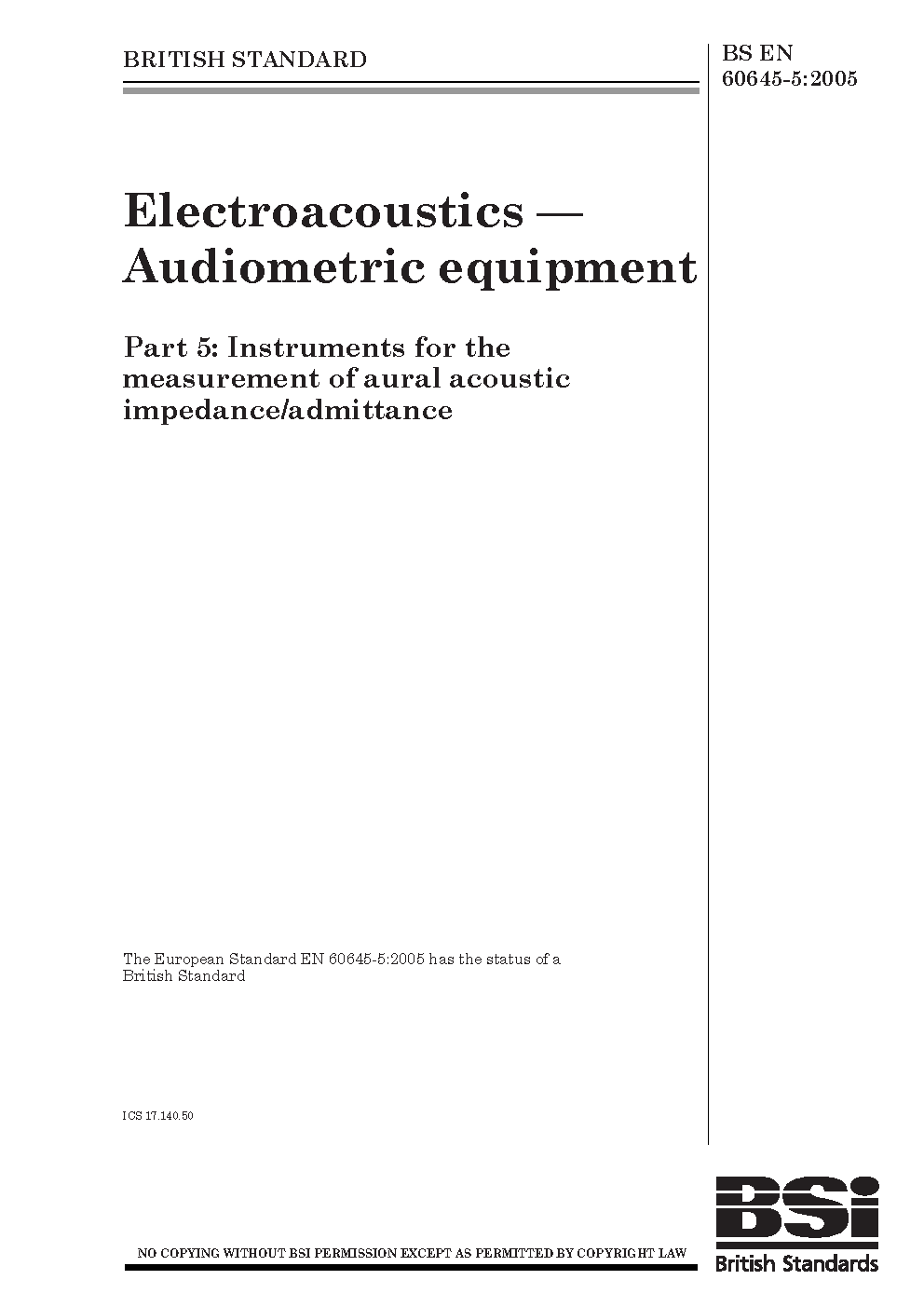 Electroacoustics. Audiometric equipment Instruments for the measurement of aural acoustic impedance/admittance